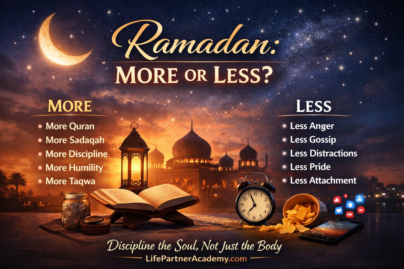 Ramadan is often described as the month of fasting. But in reality, fasting is only the doorway — not the destination. The true spirit of Ramadan lies in a powerful recalibration of life itself: more of what elevates the soul, and less of what enslaves it. Ramadan is not simply about abstaining from food and drink. It is about redesigning priorities. It is about spiritual restructuring. It is about consciously choosing “more” and “less” in the right places. This is the month where the believer learns that growth is not always about addition — sometimes it is about subtraction.
